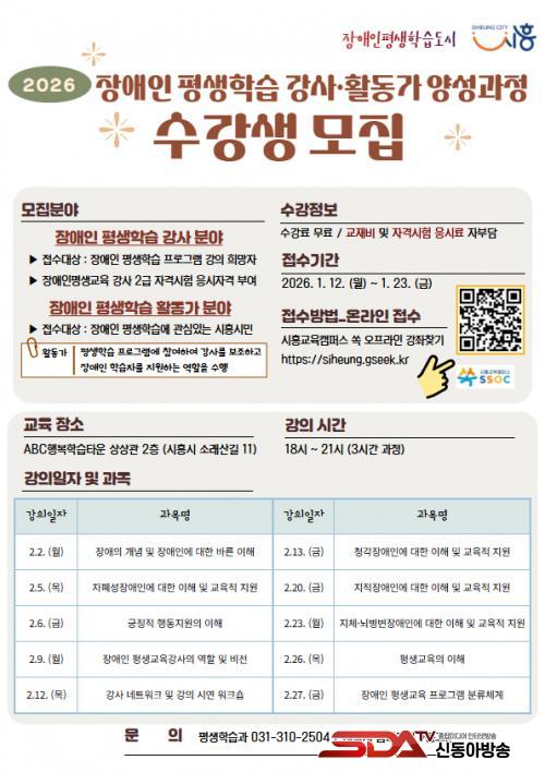 [½Åµ¿¾Æ¹æ¼Û ½ÃÈï½Ã=À̽ŵ¿±âÀÚ] ½ÃÈï½Ã´Â ¿À´Â 1¿ù 23ÀϱîÁö ¡®2026³â Àå¾ÖÀÎ Æò»ýÇнÀ Àü¹® °­»ç¿Í Ȱµ¿°¡ ¾ç¼º °úÁ¤¡¯ ¼ö°­»ýÀ» ¸ðÁýÇÑ´Ù.