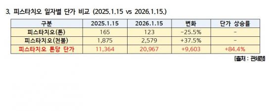 ¿¬¸» ¼ö¿ä ÁýÁß Çö»óµµ È®ÀεƴÙ. 2025³â ÇǽºÅ¸Ä¡¿ÀÀÇ ¿ùÆò±Õ ¼öÀÔ·®Àº ¾à 167ÅæÀ̾úÁö¸¸, ÀÛ³â 12¿ù ÇÑ ´Þ ¼öÀÔ·®Àº ¾à 372ÅæÀ¸·Î ¿ùÆò±ÕÀÇ 2.2¹è¿¡ ´ÞÇß´Ù. ¿¬¸»¡¤¸íÀý ¼Òºñ¿Í ¡®µÎÂËÄí À¯Ç࡯¿¡ µû¸¥ ¼ö¿ä°¡ °ãÄ¡¸ç, ƯÁ¤ ½Ã±â¿¡ °¡°Ý°ú ¹°·® º¯µ¿¼ºÀÌ µ¿½Ã¿¡ È®´ëµÈ °ÍÀÌ´Ù.