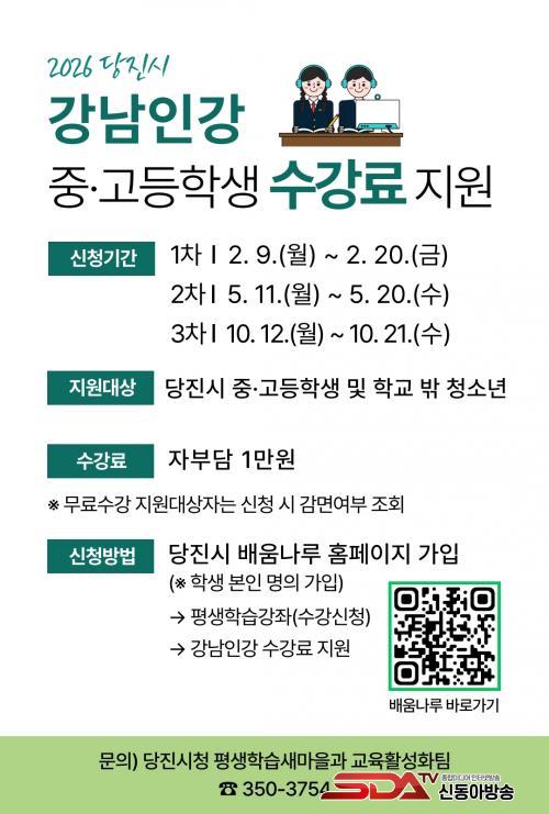[½Åµ¿¾Æ¹æ¼Û=ÀÌÀçö±âÀÚ] ´çÁø½Ã´Â »ç±³À°ºñ·Î ÀÎÇÑ ºÎ¸ðµéÀÇ °æÁ¦Àû ºÎ´ã ´ú±â À§ÇØ ´çÁø½Ã Áß°íµîÇлý°ú Çб³ ¹Û û¼Ò³âÀ» ´ë»óÀ¸·Î ¡®°­³²Àΰ­¡¯ ¼ö°­·á¸¦ Áö¿øÇÑ´Ù°í 6ÀÏ ¹àÇû´Ù.
