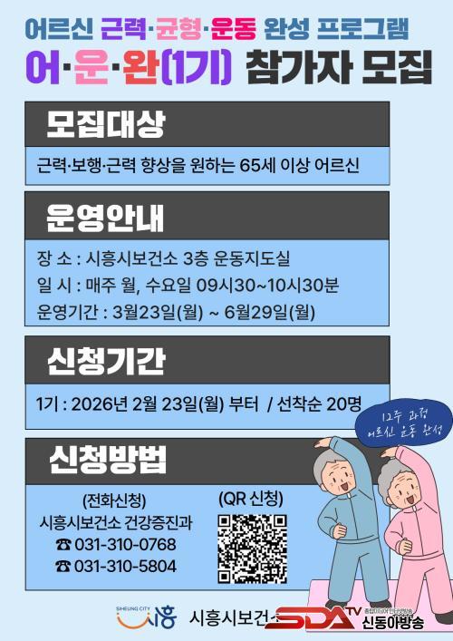 ¡®¾î¤ý¿î¤ý¿Ï¡¯Àº º¸°Çº¹ÁöºÎ¿Í Çѱ¹°Ç°ÁõÁø°³¹ß¿øÀÌ °³¹ßÇÑ ¾î¸£½Å ¸ÂÃãÇü ±Ù·Â¤ý±ÕÇü ¿îµ¿ ÇÁ·Î±×·¥À¸·Î, ±Ù·Â°ú ±ÕÇü ´É·ÂÀ» ü°èÀûÀ¸·Î Çâ»óÇØ º¸Çà ´É·ÂÀ» ³ôÀÌ°í ³«»ó À§ÇèÀ» ÁÙ¿© ÀÏ»ó»ýȰ ±â´É À¯Áö¿Í °Ç°ÇÑ ³ëÈÄ »ýȰÀ» Áö¿øÇϰíÀÚ ÃßÁøµÈ´Ù.