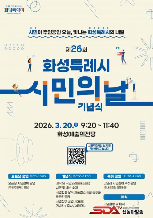 ÇÑÆí, ¡®Á¦26ȸ ȼºÆ¯·Ê½Ã¹ÎÀÇ ³¯¡¯ ±â³ä½ÄÀº 3¿ù 20ÀÏ ¿ÀÀü 10½Ã ȼº¿¹¼úÀÇÀü´ç¿¡¼ ¿¸°´Ù. À̹ø ±â³ä½ÄÀº ¡®½Ã¹ÎÀÌ ÁÖÀΰøÀÎ ¿À´Ã, ºû³ª´Â ȼºÆ¯·Ê½ÃÀÇ ³»ÀÏ¡¯À̶ó´Â ½½·Î°Ç°ú ÇÔ²² ½Ã¹ÎÀÌ ¹«´ë¸¦ ²Ù¹Ì´Â Âü¿©Çü Çà»ç·Î ÁøÇàµÈ´Ù.