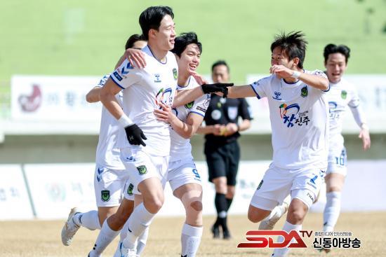 »õ·Î¿î ¾ó±¼µé°ú ÇÔ²² ½Å»ýÆÀÀÇ Ã¢´Ü Ȩ °³¸·ÀüÀ» ã¾Æ ¿øÁ¤ °æ±â¿¡ ³ª¼± ÁøÁֽùÎÃ౸´ÜÀº °æ±â ÃÊ¹Ý »ó´ëÀÇ ½Ç¼ö¸¦ ³õÄ¡Áö ¾Ê°í ±èµµÀ±ÀÌ ¿¬¼Ó°ñÀ» ÅͶ߸®¸ç ¾Õ¼­ ³ª°¬´Ù. ±èµµÀ±Àº Àü¹Ý 1ºÐ »ó´ë ¼öºñÀÇ ½Ç¼ö¸¦ ƴŸ ¼±Á¦°ñÀ» ³ÖÀº µ¥ À̾î, Àü¹Ý 7ºÐ¿¡´Â °­ÇÑ ¾Ð¹ÚÀ¸·Î °ñŰÆÛÀÇ ½ÇÃ¥À» À¯µµÇÑ µÚ ºó °ñ¹®¿¡ ¹Ð¾î ³ÖÀ¸¸ç 2-0À¸·Î ¾Õ¼­ ³ª°¬´Ù.