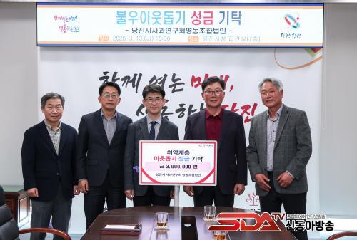 ÃÖ¼ºÅ ´ëÇ¥´Â ¡°´çÁø½Ã¿¡¼ ¿À·§µ¿¾È »ç°ú¸¦ Àç¹èÇÏ´Â ³ó¾÷ÀÎÀ¸·Î¼ Áö¿ª»çȸ¿¡ ´ëÇÑ Ã¥ÀÓÀ» Ç×»ó »ý°¢ÇؿԴ١±¸ç, ¡°À̹ø ±âŹÀÌ ¾î·Á¿î ÀÌ¿ôµé¿¡°Ô ÀÛÀº ÈûÀÌ µÇ±â¸¦ ¹Ù¶ó¸ç, ¾ÕÀ¸·Îµµ Áö¿ª°ú »ó»ýÇÏ´Â ³ó¾÷¹ýÀÎÀÌ µÇµµ·Ï ³ë·ÂÇϰڴ١±°í ÀüÇß´Ù.