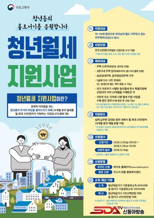 Áö¿ø ´ë»óÀº ¸¸ 19¼¼ºÎÅÍ 34¼¼ ÀÌÇÏÀÇ Ã»³âÀ¸·Î, ºÎ¸ð¿Í º°µµ·Î °ÅÁÖÇÏ´Â ¹«ÁÖÅÃÀÚ¿©¾ß Çϸç ÀüÀÔ½Å°í°¡ Çʼö´Ù. Áö¿ø ³»¿ëÀº »ý¾Ö 1ȸ ÇÑÇØ ½ÇÁ¦ ³³ºÎÇÑ ÀÓ´ë·á ¹üÀ§ ³»¿¡¼ ¿ù ÃÖ´ë 20¸¸ ¿ø¾¿, ÃÖ´ë 24°³¿ù µ¿¾È ºÐÇÒ Áö±ÞµÈ´Ù.