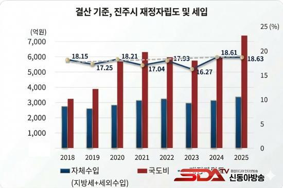 ÇÑÆí, ÁøÁÖ½ÃÀÇ °á»ê ±âÁØ ÀçÁ¤ÀÚ¸³µµ´Â 2018³â 18.15%¿¡¼­ 2025³â 18.63%¸¦ ±â·ÏÇϸç Å« º¯µ¿ ¾øÀÌ À¯ÁöµÇ°í ÀÖ´Ù. 2023³â¿¡ ´«¿¡ ¶ç°Ô Ç϶ôÇÑ °ÍÀº ±¹¼¼Ã»ÀÌ Çѱ¹ÅäÁöÁÖÅðø»ç(LH)ÀÇ ¹ýÀμ¼¸¦ ȯ±ÞÇϸ鼭, ÁøÁֽõµ ¹ýÀÎÁö¹æ¼Òµæ¼¼¸¦ ȯ±ÞÇ߱⠶§¹®À¸·Î ºÐ¼®µÈ´Ù.