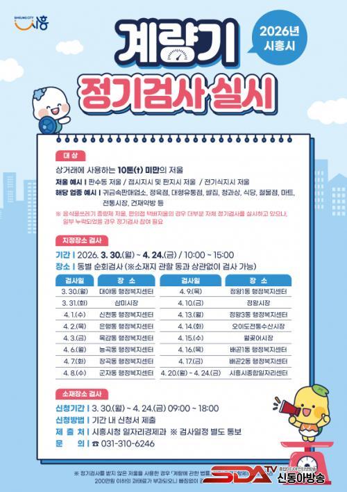 [½Åµ¿¾Æ¹æ¼Û ½ÃÈï½Ã=À̽ŵ¿±âÀÚ] ½ÃÈï½Ã´Â °øÁ¤ÇÑ »ó°Å·¡ Áú¼­ È®¸³°ú ¼ÒºñÀÚ ±ÇÀÍ º¸È£¸¦ À§ÇØ ¿À´Â 3¿ù 30ÀϺÎÅÍ 4¿ù 24ÀϱîÁö ¡®2026³â °è·®±â(Àú¿ï) Á¤±â °Ë»ç¡¯¸¦ ½Ç½ÃÇÑ´Ù.