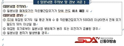 Áúº´°ü¸®Ã»Àº 3¿ù 20ÀÏ Á¦ÁÖÆ¯º°ÀÚÄ¡µµ¿¡¼ ¿ÃÇØ óÀ½À¸·Î ÀϺ»³ú¿° ¸Å°³¸ð±âÀÎ ¡®ÀÛÀº»¡°£Áý¸ð±â(Culex tritaeniorhynchus)¡¯°¡ È®Àεʿ¡ µû¶ó Àü±¹¿¡ ÀϺ»³ú¿° ÁÖÀǺ¸¸¦ ¹ß·ÉÇß´Ù.
