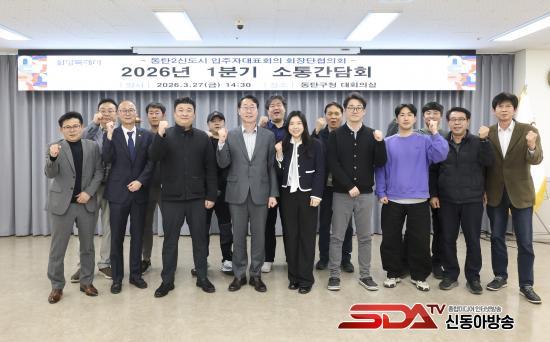 »çÁø= Á¤¸í±Ù È­¼ºÆ¯·Ê½ÃÀå°ú µ¿Åº2½Åµµ½Ã ¾ÆÆÄÆ® ÀÔÁÖÀÚ´ëÇ¥ ȸÀå´ÜÀÌ ¡®2026³â 1ºÐ±â ¼ÒÅë°£´ãȸ¡¯¸¦ ¸¶Ä£ µÚ ±â³äÃÔ¿µÀ» Çϰí ÀÖ´Ù.