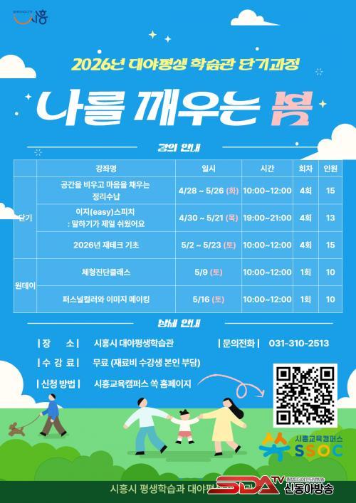 4¿ù 28ÀϺÎÅÍ 5¿ù 26ÀϱîÁö ÁøÇàµÇ´Â ÇÁ·Î±×·¥Àº ´Ü±â°úÁ¤ 3°³¿Í ¿øµ¥ÀÌ Å¬·¡½º 2°³ µî ÃÑ 5°³ °Á·Π±¸¼ºµÆ´Ù. ´Ü±â°úÁ¤Àº ¡®°ø°£À» ºñ¿ì°í ¸¶À½À» ä¿ì´Â Á¤¸®¼ö³³¡¯, ¡®ÀÌÁö(easy) ½ºÇÇÄ¡: ¸»ÇϱⰡ Á¦ÀÏ ½¬¿ü¾î¿ä¡¯, ¡®2026³â ÀçÅ×Å©ÀÇ ±âÃÊ¡¯À̸ç, ¿øµ¥ÀÌ Å¬·¡½º´Â ¡®Ã¼ÇüÁø´Ü Ŭ·¡½º¡¯¿Í ¡®ÆÛ½º³Î Ä÷¯ ¹× À̹ÌÁö ¸ÞÀÌÅ·¡¯ÀÌ ¿î¿µµÉ ¿¹Á¤ÀÌ´Ù.