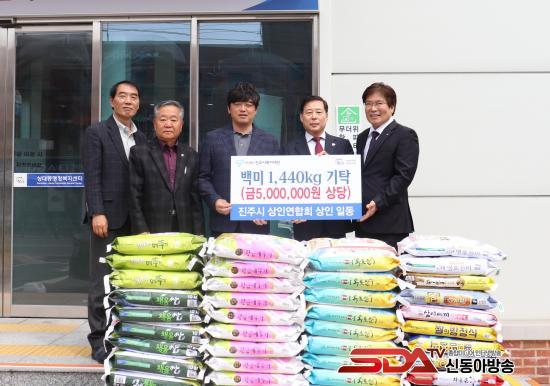 [½Åµ¿¾Æ¹æ¼Û °æ³²ÁøÁÖ=³²±Ã¿µ±â±âÀÚ] ÁøÁֽà »óÀο¬ÇÕȸ´Â ȸÀå ÀÌ¡¤ÃëÀÓ½ÄÀ» ¸Â¾Æ 6ÀÏ È¸¿øµéÀÇ ÃàÇÏ ¼Ó¿¡ Àü´Þ¹ÞÀº ¹é¹Ì 1,440kg(10kg, 144Æ÷, ȯ°¡¾× 500¸¸ ¿ø »ó´ç)À» Áö¿ªÀÇ ¾î·Á¿î ÀÌ¿ô¿¡°Ô Àü´ÞÇØ ´Þ¶ó¸ç ÁøÁֽú¹ÁöÀç´Ü¿¡ ±âŹÇß´Ù.