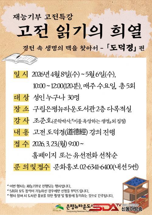 À̹ø °Á´ ³ëÀÚÀÇ »ç»óÀ» ´ãÀº µ¿¾ç °íÀü ¡®µµ´ö°æ¡¯À» ÅëÇØ »îÀÇ ÁöÇý¸¦ µÇ¤°í, Çö´ë¸¦ »ì¾Æ°¡´Â µ¥ ÇÊ¿äÇÑ ÅëÂû°ú ¼ºÂûÀÇ ½Ã°£À» Á¦°øÇϰíÀÚ ±âȹµÆ´Ù.