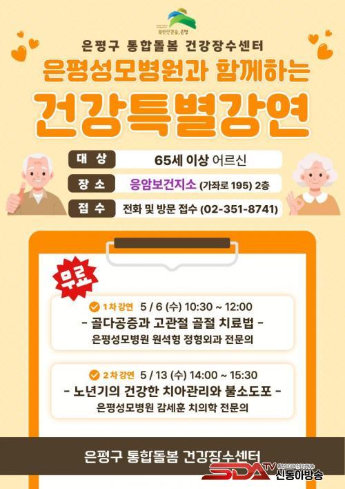 À̹ø °­¿¬Àº ÀºÆò±¸ ÅëÇÕµ¹º½ °Ç°­Àå¼ö¼¾ÅÍ¿¡¼­ ÁøÇàµÇ¸ç, ³ë³â±â¿¡ ÀÚÁÖ ¹ß»ýÇÏ´Â ÁÖ¿ä ÁúȯÀÇ ¿¹¹æ°ú °ü¸®¸¦ ÁÖÁ¦·Î 2ȸ¿¡ °ÉÃÄ ÁøÇàµÈ´Ù. ÀºÆò¼º¸ðº´¿ø Àü¹®Àǰ¡ Á÷Á¢ °­ÀÇÇØ ½Å·Úµµ ³ôÀº °Ç°­ Á¤º¸¸¦ Á¦°øÇÑ´Ù.
