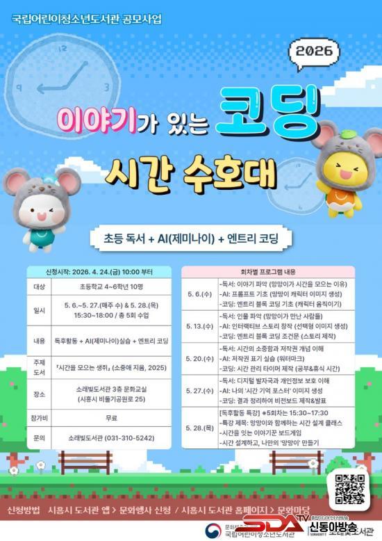 ¡®À̾߱Ⱑ ÀÖ´Â ÄÚµù¡¯Àº ÃʵîÇб³ 4~6ÇгâÀ» ´ë»óÀ¸·Î µ¶¼¸¦ ÅëÇØ »ç°í·ÂÀ» ±â¸£°í, ÀΰøÁö´É(AI)°ú ÄÚµùÀ» Ȱ¿ëÇØ âÀÇ·ÂÀ» È®ÀåÇÏ´Â ÇÁ·Î±×·¥ÀÌ´Ù. À̹ø °úÁ¤Àº µµ¼ ¡¸½Ã°£À» ¸ðÀ¸´Â »ýÁ㡹(¼ÒÁß¾Ö ÁöÀ½, 2025)¸¦ ÁÖÁ¦ µµ¼·Î Ȱ¿ëÇØ ÀÌ¾ß±â ¼Ó ÁÖÀΰø »ýÁã ¡®¸Á¸ÁÀÌ¡¯¸¦ µû¶ó õõÈ÷ Ã¥À» Àаí, ±âÃÊ ¼öÁØÀÇ ÀΰøÁö´É(Á¦¹Ì³ªÀÌ) Ȱ¿ë°ú ¿£Æ®¸® ºí·Ï ÄÚµùÀ» ÇÔ²² üÇèÇÏ´Â ¹æ½ÄÀ¸·Î ÁøÇàµÈ´Ù.