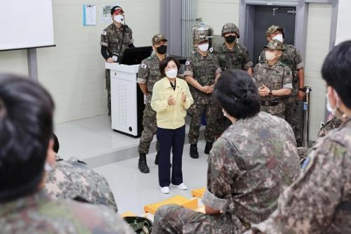 ±èº¸¶ó ½ÃÀåÀº ¿µ»ó ¸ðÀÇÈÆ·ÃÀå, ½Ã°¡Áö ±³ÀüÀå, »ç°ÝÀå µî ÈÆ·Ã½Ã¼³À» µÑ·¯º¸°í ¿½ÉÈ÷ ÈÆ·ÃÇϰí ÀÖ´Â ¿¹ºñ±ºµéÀ» °Ý·ÁÇß´Ù. ¡°¿¹ºñ±ºµéÀÇ ºÒÆí»çÇ×À» »ìÆìº¸°í, °³¼±ÇÒ Á¡Àº ¹«¾ùÀÎÁö ÀǰßÀ» µè°í ½Í¾î ÇöÀåÀ» ¹æ¹®Çß´Ù. ³¯¾¾µµ ¹«´þ°í °¢ÀÚ »çȸÀÎÀ¸·Î¼ ¹Ù»Ú½Ç ÅÙµ¥µµ ÈÆ·ÃÀÌ ÀÖ´Ù´Â ±¹°¡ÀÇ ºÎ¸§¿¡ ¾î±è¾øÀÌ ´Þ·Á ³ª¿Í ÃÖ¼±À» ´ÙÇØÁÖ°í °è½Ã´Â ¿¹ºñ±º ¿©·¯ºÐ²² °¨»çµå¸°´Ù¡±°í ÀüÇß´Ù.