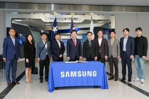 [½Åµ¿¾Æ¹æ¼Û °æÀÎ=¹Ú´ë¿µ±âÀÚ]ÀÌ»óÀÏ ¿ëÀÎÆ¯·Ê½ÃÀåÀÌ »ï¼ºÀüÀÚ ¿À½ºÆ¾ °øÀå¿¡¼­ °ü°èÀÚµé°ú ±â³äÃÔ¿µÀ» Çϰí ÀÖ´Ù.(ÀÌ ½ÃÀå ÁÂÃøÀÌ Àå½ÂÅ »ï¼º ¿À½ºÆ¾¹ýÀÎ »ó¹«, ¿ìÃøÀÌ ±¸º»¿µ »ï¼º ¿À½ºÆ¾¹ýÀÎ ¹ýÀÎÀå)