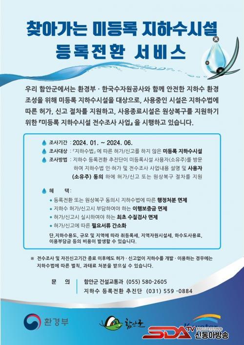 [½Åµ¿¾Æ¹æ¼Û ÇÔ¾È=À̽ŵ¿±âÀÚ]ÇԾȱºÀº ¿ÃÇØ ȯ°æºÎ·ÎºÎÅÍ ¡®¹Ìµî·Ï ÁöÇϼö ½Ã¼³ Àü¼öÁ¶»ç »ç¾÷¡¯ ´ë»ó Áö¹æÀÚÄ¡´Üü·Î ¼±Á¤µÅ 1¿ùºÎÅÍ 6¿ù±îÁö °ü³» ¹Ìµî·Ï ÁöÇϼö ½Ã¼³ Àü¼öÁ¶»ç¸¦ ½Ç½ÃÇÑ´Ù.