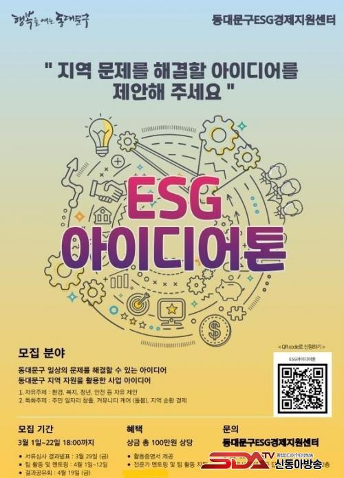 [½Åµ¿¾Æ¹æ¼Û µ¿´ë¹®=À̽ŵ¿±âÀÚ]¼­¿ï µ¿´ë¹®±¸°¡ ESG°æÁ¦Áö¿ø¼¾ÅÍ¿¡¼­ ÀÏ»óÀÇ Áö¿ª¹®Á¦¸¦ ÇØ°áÇϴ âÀÇÀûÀÎ ¾ÆÀ̵ð¾î¸¦ ¸ðÁýÇÏ´Â ¡®2024³â ESG ¾ÆÀ̵ð¾îÅæ¡¯À» °³ÃÖÇÑ´Ù.
