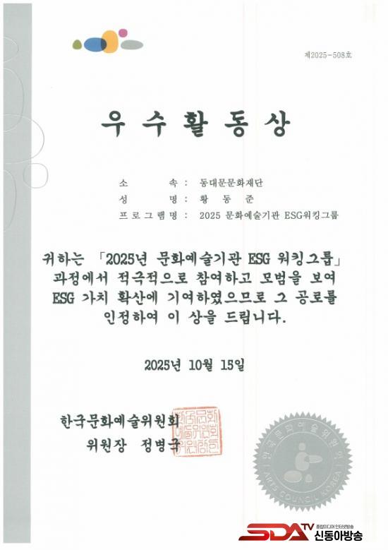 2025³â ¹®È­¿¹¼ú±â°ü ESG ¿öÅ·±×·ì ¿ì¼öȰµ¿»ó(µ¿´ë¹®¹®È­Àç´Ü)