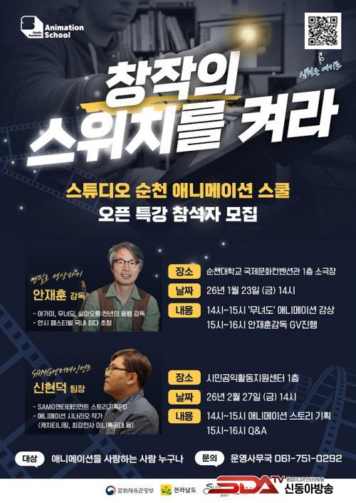 ¡®½ºÆ©µð¿À ¼øÃµ(Studio Suncheon), À¥Å÷¡¤¾Ö´Ï¸ÞÀÌ¼Ç ½ºÄð¡¯Àº Áö¿ª ÄÜÅÙÃ÷ ±â¾÷°ú Çù·ÂÇØ »ê¾÷ÇöÀå¿¡ Æ¯ÈµÈ ½Ç¹«Á᫐ ±³À°À» ÁøÇàÇÏ´Â »ç¾÷À¸·Î 1¿ùºÎÅÍ 4¿ù±îÁö 4°³¿ù °£ ÁøÇàµÇ¸ç, À¥Å÷ ½ºÄðÀº ¼øÃµ±Û·Î¹úÀ¥Å÷Çãºê¼¾ÅÍ, ¾Ö´Ï¸ÞÀÌ¼Ç ½ºÄðÀº ½Ã¹Î°øÀÍȰµ¿Áö¿ø¼¾ÅÍ¿¡¼ °¢°¢ ÁøÇàµÇ°í ÀÖ´Ù.