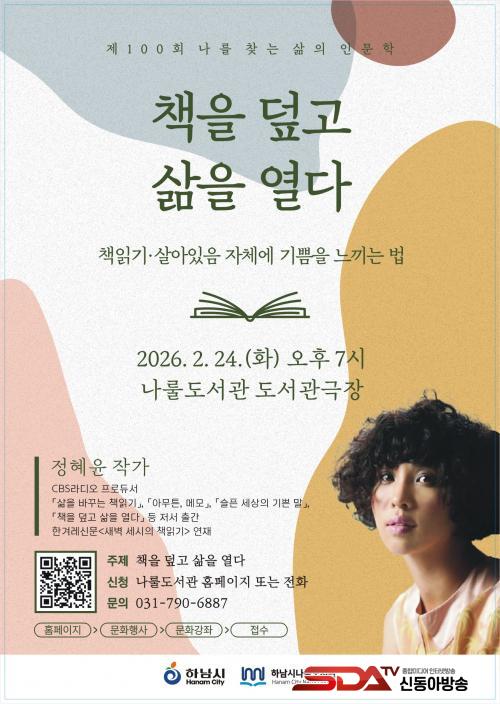 À̹ø 100¹øÂ° °­¿¬Àº 24ÀÏ ¿ÀÈÄ 7½Ã ³ª·êµµ¼­°ü µµ¼­°ü±ØÀå¿¡¼­ ¿­¸®¸ç, Á¤ÇýÀ± ÀÛ°¡¸¦ ÃÊÃ»ÇØ ¡®Ã¥À» µ¤°í »îÀ» ¿­´Ù–Ã¥Àб⡤»ì¾ÆÀÖÀ½ ÀÚü¿¡ ±â»ÝÀ» ´À³¢´Â ¹ý¡¯À» ÁÖÁ¦·Î ÁøÇàµÈ´Ù. °­¿¬¿¡¼­´Â Ã¥ÀбⰡ °³ÀÎÀÇ »î°ú ¾î¶»°Ô ¿¬°áµÇ°í È®ÀåµÇ´ÂÁö¿¡ ´ëÇØ ±íÀÌ ÀÖ´Â À̾߱⸦ ³ª´­ ¿¹Á¤ÀÌ´Ù.
