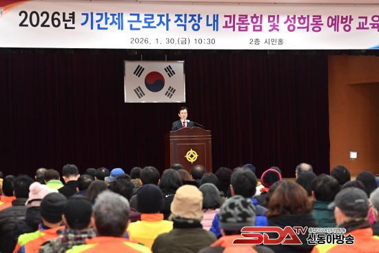[½Åµ¿¾Æ¹æ¼Û °æ³²ÁøÁÖ=±è¸í¼ö±âÀÚ] ÁøÁֽô 30ÀÏ ½Ãû ½Ã¹ÎȦ¿¡¼­ ±â°£Á¦ ±Ù·ÎÀÚ 200¿© ¸íÀ» ´ë»óÀ¸·Î ¡®Á÷Àå ³» ±«·ÓÈû¡¤¼ºÈñ·Õ ¿¹¹æ ±³À°¡¯À» ½Ç½ÃÇß´Ù°í ¹àÇû´Ù.