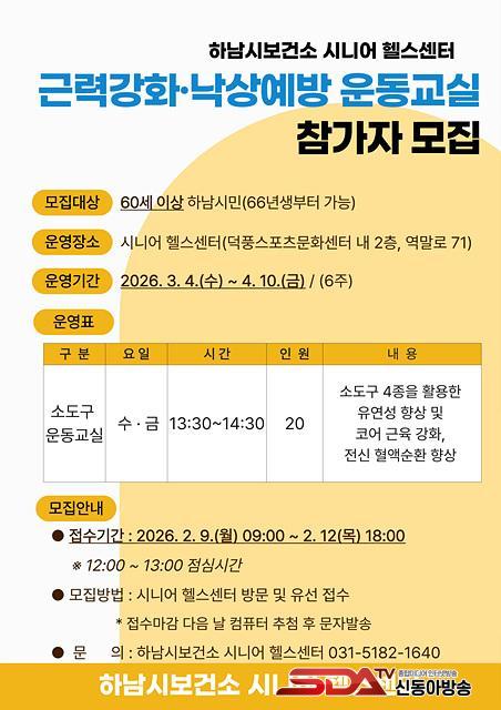 À̹ø ¸ðÁý¿¡¼´Â 60¼¼ ÀÌ»ó(1966³â»ý ÀÌÀü Ãâ»ýÀÚ) Çϳ²½Ã¹Î 20¸íÀ» Ãß÷À¸·Î ¼±¹ßÇÑ´Ù. ¼±Á¤µÈ Âü¿©ÀÚµéÀº ÇʶóÅ×½º ¸µ, ½ºÆ®·¹Äª ¹êµå, Æû·Ñ·¯, ½ºÅܹڽº µî 4Á¾ÀÇ ¼Òµµ±¸¸¦ Ȱ¿ëÇØ À¯¿¬¼º Çâ»ó, ÄÚ¾î ±ÙÀ° °È, Àü½Å Ç÷¾×¼øÈ¯ °³¼±À» Áß½ÉÀ¸·Î ÇÑ ¿îµ¿ ÇÁ·Î±×·¥¿¡ Âü¿©ÇÏ°Ô µÈ´Ù.
