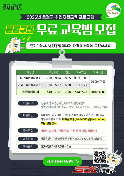 ¸ðÁý °úÁ¤Àº ÃÑ 2°³ ºÐ¾ß´Ù. Àü±â±â¼ú Àη ¾ç¼º(1¡¤2±â)°ú º´¿øµ¿Çà¸Å´ÏÀú Àη ¾ç¼º °úÁ¤ÀÌ ¿î¿µµÇ¸ç, ÀÏÁ¤¿¡ µû¶ó ¼øÂ÷ÀûÀ¸·Î ±³À°»ýÀ» ¼±¹ßÇÑ´Ù. ¡®Àü±â±â¼ú °úÁ¤¡¯ 1±â´Â ³»´Þ 4ÀϱîÁö, 2±â´Â ³»´Þ 16ÀϺÎÅÍ ¸ðÁýÀ» ½ÃÀÛÇÑ´Ù. ¡®º´¿øµ¿Çà¸Å´ÏÀú °úÁ¤¡¯Àº ¿À´Â 5¿ù 1ÀϺÎÅÍ ¸ðÁýÇÑ´Ù.