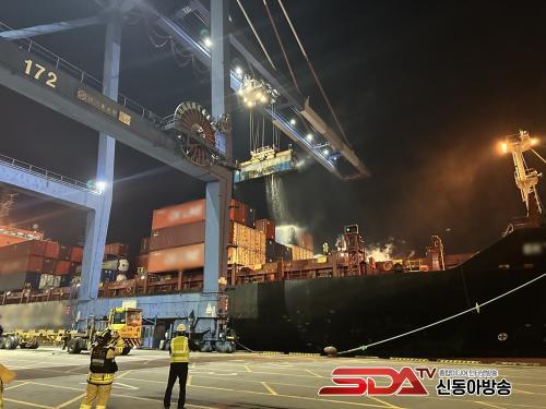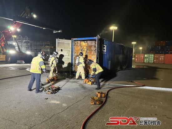 ½¡ÀÌ ÀûÀçµÈ ÄÁÅ×À̳ʿ¡ 1°³¿¡¼­ ÀÚ¿¬¹ßÈ­·Î ¿¬±â°¡ ÇǾî¿Ã¶úÀ¸³ª Å« È­Àç°¡ ¹ß»ýÇÏÁø ¾Ê¾ÒÀ¸¸ç, ¿©¼öÇØ°æÀº °Å¹®µµ ÀÎ±Ù ÇØ»ó¿¡¼­ºÎÅÍ °æºñÇÔÁ¤À» µ¿¿øÇØ ±¤¾çÇ× ÄÁÅ×À̳ʺεαîÁö ¾ÈÀü°ü¸®¸¦ ½Ç½ÃÇß´Ù.