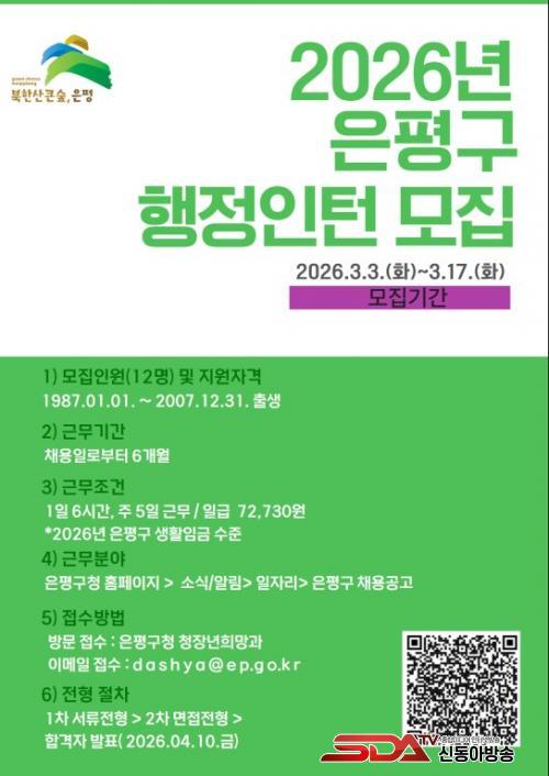 ¸ðÁý ´ë»óÀº ÀºÆò±¸¿¡ °ÅÁÖÇÏ´Â 19~39¼¼ ¹ÌÃë¾÷ û³âÀÌ´Ù. ¼±¹ßµÈ ÇàÁ¤ÀÎÅÏÀº 5¿ùºÎÅÍ 10¿ù±îÁö 6°³¿ù°£ ÀºÆò¿ª»çÇÑ¿Á¹Ú¹°°ü, ÀºÆò¹®È­¿¹¼úȸ°ü, ±¸Ã» µî ÃÑ 12°³ ±Ù¹«Ã³¿¡ ¹èÄ¡µÇ¾î ÇàÁ¤ »ç¹«¸¦ ¼öÇàÇÑ´Ù.