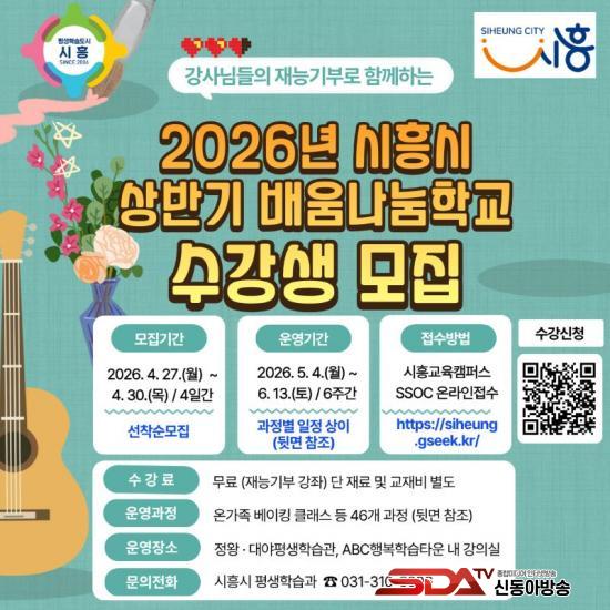 ¼ö°»ý ¸ðÁý ±â°£Àº 4¿ù 27ÀϺÎÅÍ 4¿ù 30ÀϱîÁöÀ̸ç, °Áº° ¸ðÁý ÀοøÀº ¼±Âø¼øÀ¸·Î ¸¶°¨µÈ´Ù. ½ÅûÀº ½ÃÈï±³À°Ä·ÆÛ½º ¡®½ï(SSOC)¡¯À» ÅëÇØ °¡´ÉÇϸç, ¼¼ºÎ °Á ÀÏÁ¤°ú ³»¿ëÀº ȨÆäÀÌÁö¸¦ ÅëÇØ È®ÀÎÇÒ ¼ö ÀÖ´Ù.