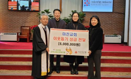 ¼­±¸ ¸¶Àü±³È¸, ÀÌ¿ôµ½±â ¼º±Ý 5¹é¸¸¿ø Àü´Þ