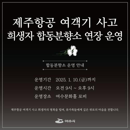 ¿©¼ö½Ã, Á¦ÁÖÇ×°ø ¿©°´±â »ç°í Èñ»ýÀÚ ÇÕµ¿ºÐÇâ¼Ò ¿¬Àå ¿î¿µ