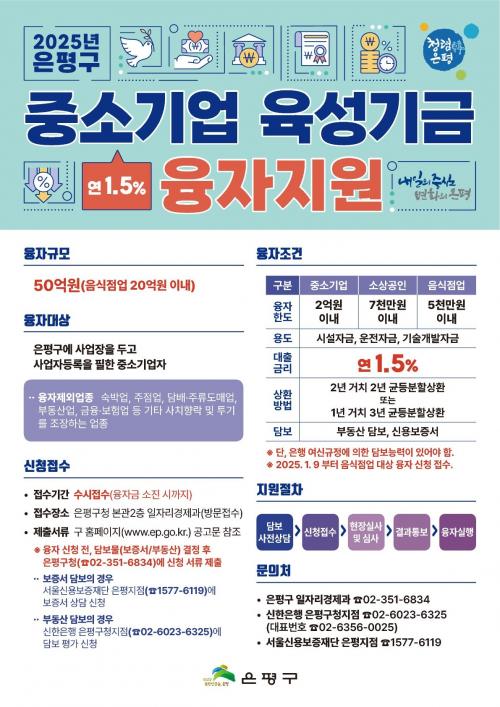 ÀºÆò±¸, Áö¿ª°æÁ¦ »ì¸®±â À§ÇÑ 2025³â Áß¼Ò±â¾÷ À°¼º±â±Ý À¶ÀÚÁö¿ø ½ÃÇà