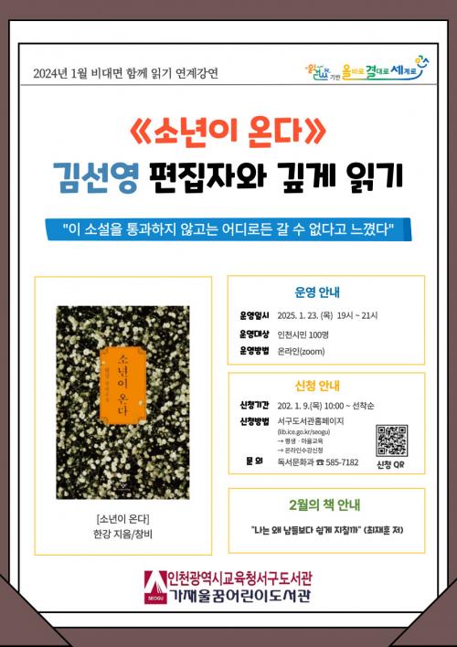 ÀÎõ±¤¿ª½Ã±³À°Ã»¼­±¸µµ¼­°ü, 1¿ù ±è¼±¿µ ÆíÁýÀÚ¿Í ¡®¼Ò³âÀÌ ¿Â´Ù¡¯ ±í°Ô Àбâ