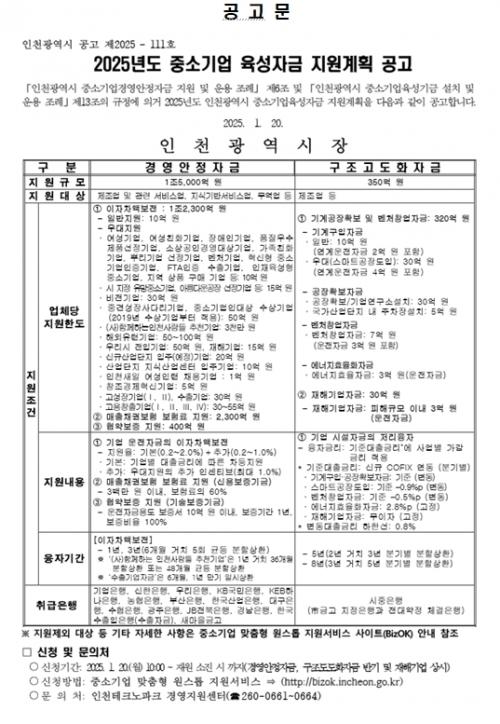 [½Åµ¿¾Æ¹æ¼Û = À±¹Î½Ä±âÀÚ] ÀÎõ±¤¿ª½Ã(½ÃÀå À¯Á¤º¹)´Â ¿ÃÇØ 650¾ï ¿øÀÇ »ç¾÷¿¹»êÀ¸·Î ÃÑ 1Á¶ 5,350¾ï ¿ø ±Ô¸ðÀÇ Áß¼Ò±â¾÷ À°¼ºÀÚ±ÝÀ» Áö¿øÇÑ´Ù°í ¹àÇû´Ù. ÀÌ´Â Áö³­ÇØ Áö¿ø ±Ý¾× 1Á¶ 3,350¾ï ¿øº¸´Ù 2,000¾ï ¿øÀÌ ´Ã¾î³­ ±Ô¸ð·Î, Áö¿ª±â¾÷µéÀÌ °í±Ý¸®·Î ÀÎÇÑ ¾î·Á¡¦