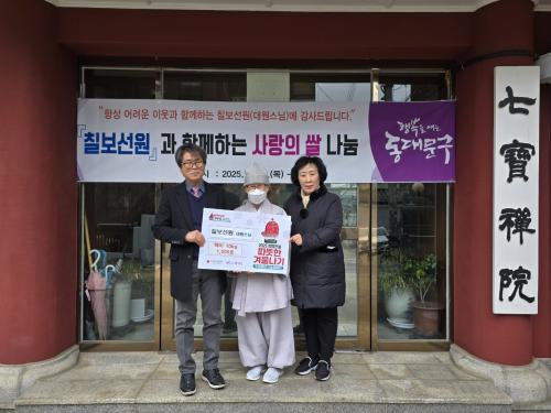 [½Åµ¿¾Æ¹æ¼Û µ¿´ë¹®±¸=À̽ŵ¿±âÀÚ] µ¿´ë¹®±¸´Â Áö³­ 15ÀÏ Ä¥º¸¼±¿ø¿¡¼­ Àú¼Òµæ°¡±¸¸¦ À§ÇØ »ç¶ûÀÇ ¹é¹Ì 10kg 1,000Æ÷¸¦ ±âŹÇß´Ù°í ¹àÇû´Ù. Ä¥º¸¼±¿øÀº ºÒ±³Àç´Ü¹ýÀÎ ¼±Çпø¿¡ ¼Ò¼ÓµÇ¾î ÀÖ´Â µµ½É »çÂû·Î, 10³â ³Ñ°Ô ÇØ¸¶´Ù ¾î·Á¿î ÀÌ¿ôÀ» À§ÇØ ½Ò, ¶ó¸é µî ¼ºÇ°À» ±â¡¦