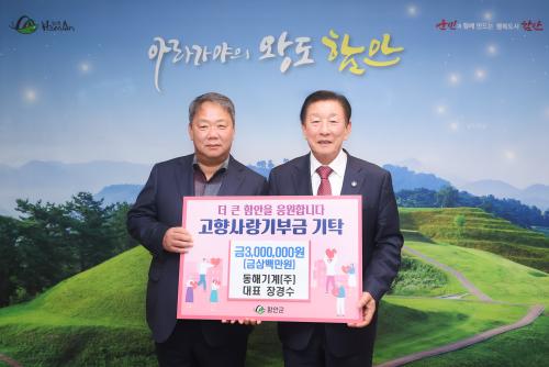 [½Åµ¿¾Æ¹æ¼Û °æ³²ÇÔ¾È=À̽ŵ¿±âÀÚ] ÇԾȱºÀº 20ÀÏ µ¿Çرâ°è(ÁÖ) Àå°æ¼ö ´ëÇ¥°¡ ÇԾȱº¿¡ °íÇâ»ç¶û±âºÎ±Ý 300¸¸¿øÀ» ±âºÎÇß´Ù°í ¹àÇû´Ù. Ä¥¼­ÀϹݻê¾÷´ÜÁö¿¡ º»»ç¸¦ µÐ µ¿Çرâ°è(ÁÖ)´Â ÁßÀåºñ ¹× Ç÷£Æ® ¼Ö·ç¼Ç ±â¾÷À¸·Î 2024³â Á¦30ȸ °æ³²¹«¿ªÀÎ »ó ¹× Á¦61ȸ ¹«¿ª¡¦