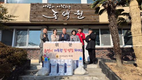 [½Åµ¿¾Æ¹æ¼ÛÀü³²¿©¼ö=±è±â³² ±âÀÚ] Àü³²µµÀÇȸ ¾ÈÀü°Ç¼³¼Ò¹æÀ§¿øÈ¸ ÃÖ¹«°æ ÀÇ¿ø(´õºÒ¾î¹ÎÁÖ´ç, ¿©¼ö4)Àº Áö³­ 1¿ù 17ÀÏ, ¹ÎÁ· ´ë¸íÀý ¼³À» ¾ÕµÎ°í ¿©¼ö½Ã¿¡ À§Ä¡ÇÑ »çȸº¹Áö½Ã¼³ ¡®µ¿¹é¿ø¡¯À» ¹æ¹®ÇØ ¸íÀý À§¹®Ç°À» Àü´ÞÇÏ¸ç µû¶æÇÑ ÀÌ¿ô»ç¶ûÀ» ½ÇõÇß´Ù. À̳¯ ÃÖ¡¦