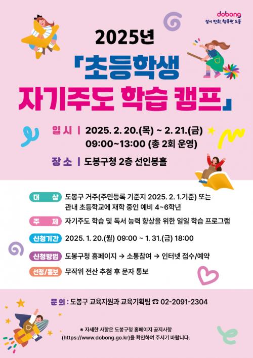 [½Åµ¿¾Æ¹æ¼Û µµºÀ±¸=À̽ŵ¿±âÀÚ] µµºÀ±¸°¡ 1¿ù 31ÀϱîÁö ¡®2025³â ÃʵîÇлý ÀÚ±âÁÖµµ ÇнÀ Ä·ÇÁ¡¯ Âü¿©ÀÚ¸¦ ¸ðÁýÇÑ´Ù. ÃʵîÇлý ÀÚ±âÁÖµµ ÇнÀ Ä·ÇÁ´Â ÃʵîÇлý ½º½º·Î°¡ °øºÎÇÏ´Â ÇнÀÀÇ Á߿伺À» ÀÌÇØÇϰí ÀÚ½ÅÀÇ ÇнÀ ¼ºÇâ¿¡ ¸Â´Â °øºÎ ½À°üÀ» Çü¼ºÇÒ ¼ö ÀÖµµ·Ï ¡¦