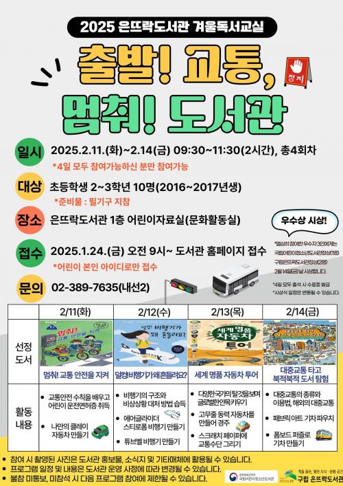 [½Åµ¿¾Æ¹æ¼Û ÀºÆò±¸=À̽ŵ¿±âÀÚ] ÀºÆò±¸´Â ±¸¸³ Àº¶ß¶ôµµ¼­°ü¿¡¼­ ³»´Þ 11ÀϺÎÅÍ 14ÀϱîÁö ¡®Ãâ¹ß! ±³Åë, ¸ØÃç! µµ¼­°ü¡¯ °Ü¿ï µ¶¼­±³½Ç ÇÁ·Î±×·¥À» ¿î¿µÇÑ´Ù°í ¹àÇû´Ù. À̹ø °Ü¿ï µ¶¼­±³½ÇÀº ÃʵîÇб³ 2Çг⿡¼­ 3Çгâ Çлý 10¸íÀ» ´ë»óÀ¸·Î ÁøÇàµÈ´Ù. ¿À´Â 24ÀÏ ¿À¡¦