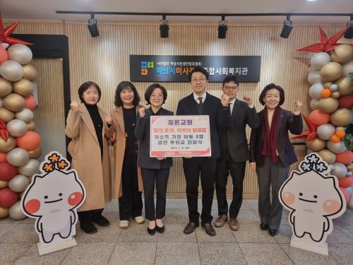 [½Åµ¿¾Æ¹æ¼Û Çϳ²½Ã=À̽ŵ¿±âÀÚ] Á¤À±±³È¸´Â Áö³­ 1¿ù 21ÀÏ(È­) Áö¿ª»çȸ ³» Àú¼Òµæ °¡Á¤ ¹× ÇѺθð°¡Á¤ ¾Æµ¿ 4¸íÀÇ ²ÞÀ» Áö¿øÇϱâ À§ÇÑ Á¤±â °á¿¬ ÈÄ¿ø±Ý Àü´Þ½ÄÀ» Çϳ²½Ã¹Ì»ç°­º¯Á¾ÇÕ»çȸº¹Áö°ü¿¡¼­ ÁøÇàÇß´Ù. ¸Å¿ù 4¸íÀÇ ¾Æµ¿¿¡°Ô Á¤±âÀûÀ¸·Î ÈÄ¿ø±ÝÀÌ Áö¿øµÇ¸ç¡¦
