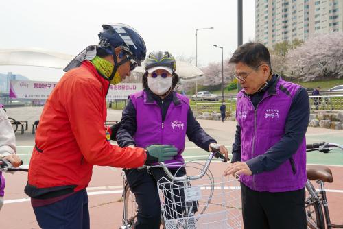 [½Åµ¿¾Æ¹æ¼Û µ¿´ë¹®±¸=À̽ŵ¿±âÀÚ] Áö³­ÇØ °¡À» Áß¶ûõ µÐÄ¡ üÀ°°ø¿ø¿¡´Â ¾ÈÀü¸ð¸¦ ¾²°í º¸¶ó»ö Á¶³¢¸¦ ÀÔÀº ÁֹεéÀÌ ÀÚÀü°Å Æä´ÞÀ» ÈûÂ÷°Ô ¹âÀ¸¸ç ¾ÕÀ¸·Î ³ª¾Æ°¬´Ù. ÀÌ´Â µ¿´ë¹®±¸°¡ ÀÚÀü°Å ÀÌ¿ë Ȱ¼ºÈ­¿Í ¾ÈÀüÇÑ ÀÚÀü°Å Ÿ±â ¹®È­ Á¶¼ºÀ» À§ÇØ ¸¶·ÃÇÑ ÀÚÀü°Å ±³½Ç dz¡¦