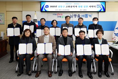 [½Åµ¿¾Æ¹æ¼Û ÀÎõ= À±¹Î½Ä±âÀÚ] ÀÎõ½Ã ³²µ¿±¸´Â ¹ÚÁ¾È¿ ±¸Ã»Àå°ú ±¹¡¤½ÇÀå µî °£ºÎ °ø¹«¿øµéÀÌ Âü¼®ÇÑ °¡¿îµ¥ ¡®2025³â °íÀ§ °øÁ÷ÀÚ Ã»·Å ½Çõ ¼­¾à½Ä¡¯À» °³ÃÖÇß´Ù°í 3ÀÏ ÀüÇß´Ù. ¼­¾à½Ä¿¡ Âü¼®ÇÑ °£ºÎ °ø¹«¿øµéÀº û·ÅÇÑ °øÁ÷»çȸ ±¸ÃàÀ» ´ÙÁüÇÏ¸ç ¼­¾à¼­¸¦¡¦