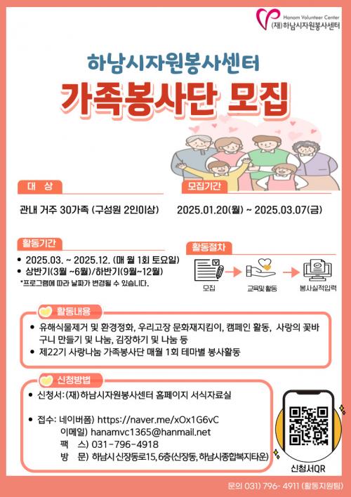 [½Åµ¿¾Æ¹æ¼Û Çϳ²½Ã=À̽ŵ¿±âÀÚ] Çϳ²½ÃÀÚ¿øºÀ»ç¼¾ÅÍ´Â ¿ì¸®Áö¿ª¿¡¼­ °¡Á·ÀÌ ÇÔ²² ºÀ»çȰµ¿À» ÇÒ ¼ö Àִ¡®Á¦22±â Çϳ²½ÃÀÚ¿øºÀ»ç¼¾ÅÍ °¡Á·ºÀ»ç´Ü¡¯À» ¸ðÁýÇÑ´Ù. Çϳ²½Ã¿¡ °ÅÁÖÇÏ´Â 2ÀÎ ÀÌ»óÀÇ °¡Á·À̶ó¸é ´©±¸³ª ½ÅûÇÒ ¼ö ÀÖÀ¸¸ç Á¢¼ö ±â°£Àº 2025³â 3¿ù 7ÀÏ(±Ý)±îÁö ¡¦