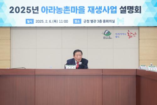 [½Åµ¿¾Æ¹æ¼Û °æ³²ÇÔ¾È=À̽ŵ¿±âÀÚ] ÇԾȱºÀº Áö³­ 6ÀÏ ±ºÃ» º°°ü 3Ãþ ÁßȸÀǽǿ¡¼­ »ç¾÷´ë»ó ¸¶À» ÃßÁøÀ§¿øÀåÀ» Æ÷ÇÔÇØ ¾à 30¿© ¸íÀÌ Âü¼®ÇÑ °¡¿îµ¥ ¡®¾Æ¶ó³óÃ̸¶À» Àç»ý»ç¾÷ ¼³¸íȸ¡¯¸¦ °³ÃÖÇß´Ù. À̳¯ ¼³¸íȸ´Â ¾Æ¶ó³óÃ̸¶À» Àç»ý¡¦
