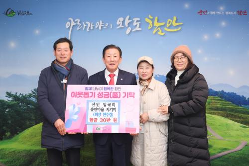 [½Åµ¿¾Æ¹æ¼Û °æ³²ÇÔ¾È=À̽ŵ¿±âÀÚ] ÇԾȱºÀº 7ÀÏ »êÀÎ À԰ ½£¾È¸¶À» ÁöŰ¹Ì(ȸÀå õ¼ö°æ)¿¡¼­ ¾î·Á¿î ÀÌ¿ôÀ» À§ÇØ Çö±Ý 30¸¸ ¿øÀ» ±âºÎÇß´Ù°í ¹àÇû´Ù. À̳¯ ±âʽÄÀº ÇԾȱºÃ» ±º¼ö½Ç¿¡¼­ ÁøÇàµÆÀ¸¸ç Á¶±ÙÁ¦ ÇԾȱº¼ö, õ¼ö°æ ȸÀå°ú °ü°èÀÚµéÀÌ Âü¼®Çß´Ù. ±âŹ¡¦