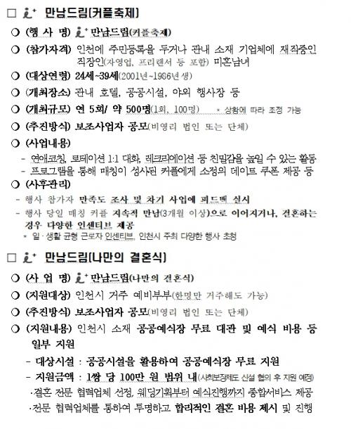 [½Åµ¿¾Æ¹æ¼Û ÀÎõ= À±¹Î½Ä±âÀÚ] ÀÎõ±¤¿ª½Ã(½ÃÀå À¯Á¤º¹)´Â ÀúÃâ»ý ¹®Á¦ ÇØ°áÀ» À§ÇÑ Á¤Ã¥ÀÇ ÀÏȯÀ¸·Î, ¹ÌÈ¥ û³âµéÀÇ ¸¸³²°ú °áÈ¥À» Àå·ÁÇÏ´Â ¡®¾ÆÀÌ Ç÷¯½º ¸¸³²µå¸²(Ä¿ÇÃÃàÁ¦&³ª¸¸ÀÇ °áÈ¥½Ä)¡¯ »ç¾÷À» ½ÃÇàÇϸç, À̸¦ ÃßÁøÇÒ º¸Á¶»ç¾÷ÀÚ¸¦ ¸ðÁýÇÑ´Ù°í 10ÀÏ ¹àÇû´Ù.¡¦