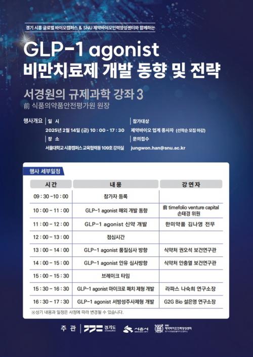 °æ±â½ÃÈï SNU Á¦¾à¹ÙÀÌ¿ÀÀη¾缺¼¾ÅÍ, ¡®GLP-1 agonist ºñ¸¸Ä¡·áÁ¦ °³¹ß¡¯ °­Á °³ÃÖ