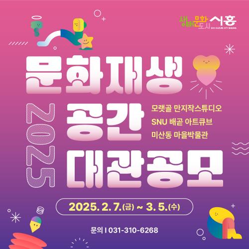 [½Åµ¿¾Æ¹æ¼Û ½ÃÈï½Ã=À̽ŵ¿±âÀÚ] ½ÃÈï½Ã´Â 3¿ù 5ÀϱîÁö 2025 ¹®È­Àç»ý°ø°£ ¸ð·§°ñ ¸¸ÁöÀÛ½ºÆ©µð¿À, SNU ¹è°ð¾ÆÆ®Å¥ºê, ¹Ì»êµ¿ ¸¶À»¹Ú¹°°ü¿¡¼­ ¹«·á ´ë°ü °ø¸ð Âü¿©ÀÚ¸¦ ¸ðÁýÇÑ´Ù. ¸ð·§°ñ ¸¸ÁöÀÛ½ºÆ©µð¿À(ÀºÇà·Î 65¹ø±æ 22, 2Ãþ)¿Í SNU ¹è°ð ¾ÆÆ®Å¥ºê(¼­¿ï´ëÇб³ 173¡¦