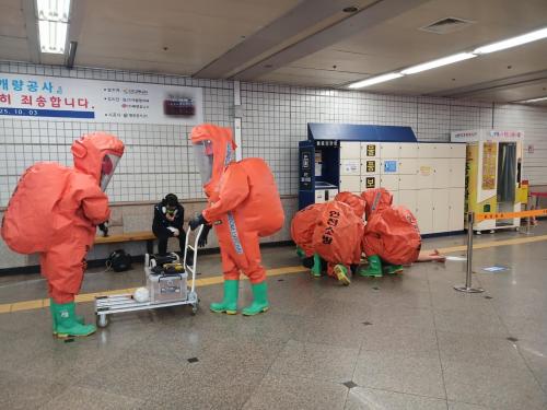 [½Åµ¿¾Æ¹æ¼Û ÀÎõ= À±¹Î½Ä±âÀÚ] 119Ư¼ö´ëÀÀ´Ü(´ÜÀå ³²¼®Çö)Àº 17ÀÏ(¿ù¿äÀÏ) °è¾ç±¸ ÀÛÀü¿ª¿¡¼­ À¯°ü±â°ü ÇÕµ¿È­»ý¹æ ´ëÅ×·¯ ´ëÀÀÈÆ·ÃÀ» ½Ç½ÃÇß´Ù°í ¹àÇû´Ù. ¡Û À̹ø ÈÆ·ÃÀº È­»ý¹æ Å×·¯ ¹ß»ý ½Ã À¯°ü±â°ü°úÀÇ ±ä¹ÐÇÑ ÇùÁ¶Ã¼°è À¯Áö ¹× ½Å¼ÓÇÑ Ãʱâ´ëÀÀÀ¸·Î, ÀÎ¸í ¡¦